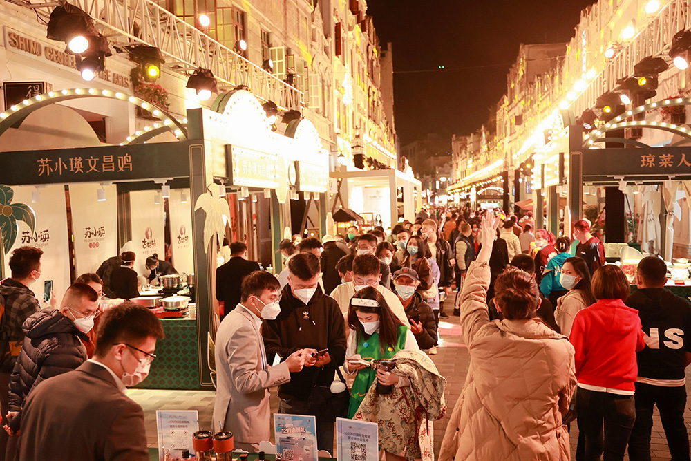 12月23日至25日在骑楼老街,不少市民游客慕名而来,纷纷加入“沉浸式风味市集”现场。海南鸡饭档口、非遗展演、创意手作、情景表演、海南旅游商品获奖商品展台和海口城市文化印记展台、金融展台等版块,散落分布于中山路骑楼老街上,琳琅满目,目不暇接。