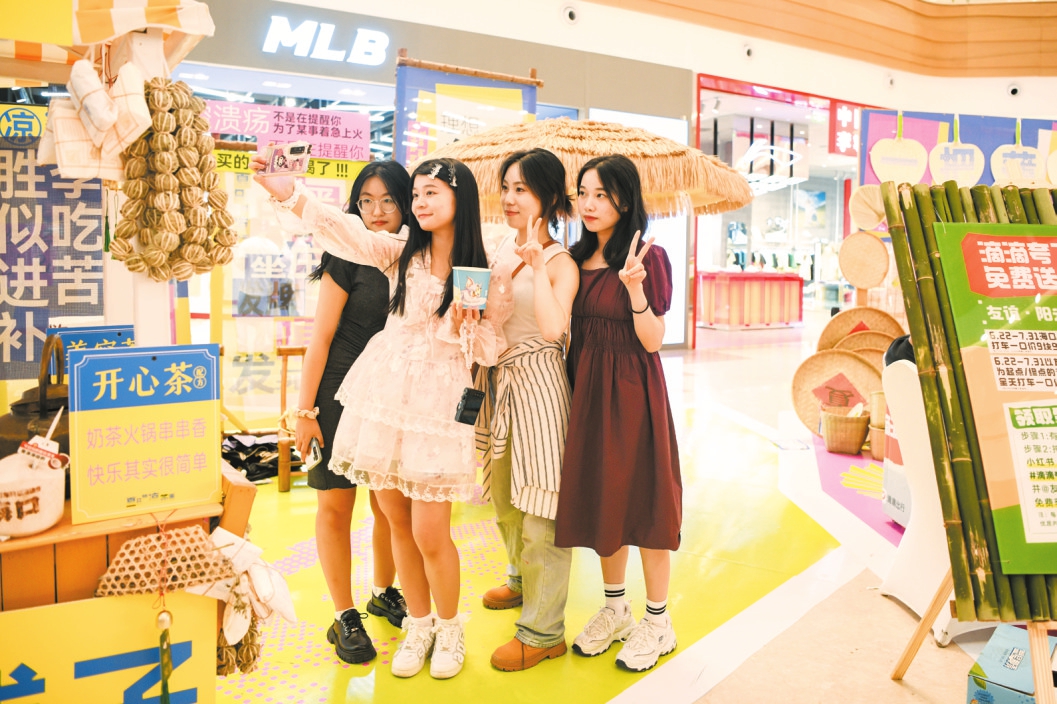 6月23日,在友谊阳光城,假日出行游玩的市民游客在商场里拍照打卡。本报记者 苏弼坤 摄