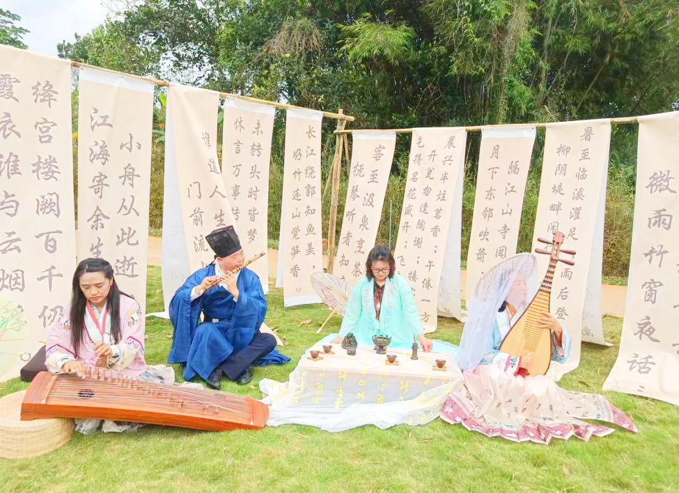 还可以欣赏到海南爱乐民族管弦乐团倾情演奏的中国传统民族音乐;海南省国文武术研究院表演的太极拳方阵;海口市朗诵艺术协会奉献二十四节气主题诗歌朗诵;书法家现场挥毫泼墨以及华服走秀表演。