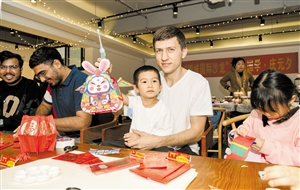 ▶2月4日,海口市外事办公室开展“椰城国际沙龙”之“品国学 庆元夕”体验活动,外国友人和小朋友一起制作灯笼。 本报记者 苏弼坤 摄