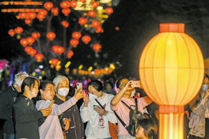 ▲2月4日,市民带着小朋友在万绿园内参观游览,感受传统文化的魅力。 本报记者 康登淋 摄