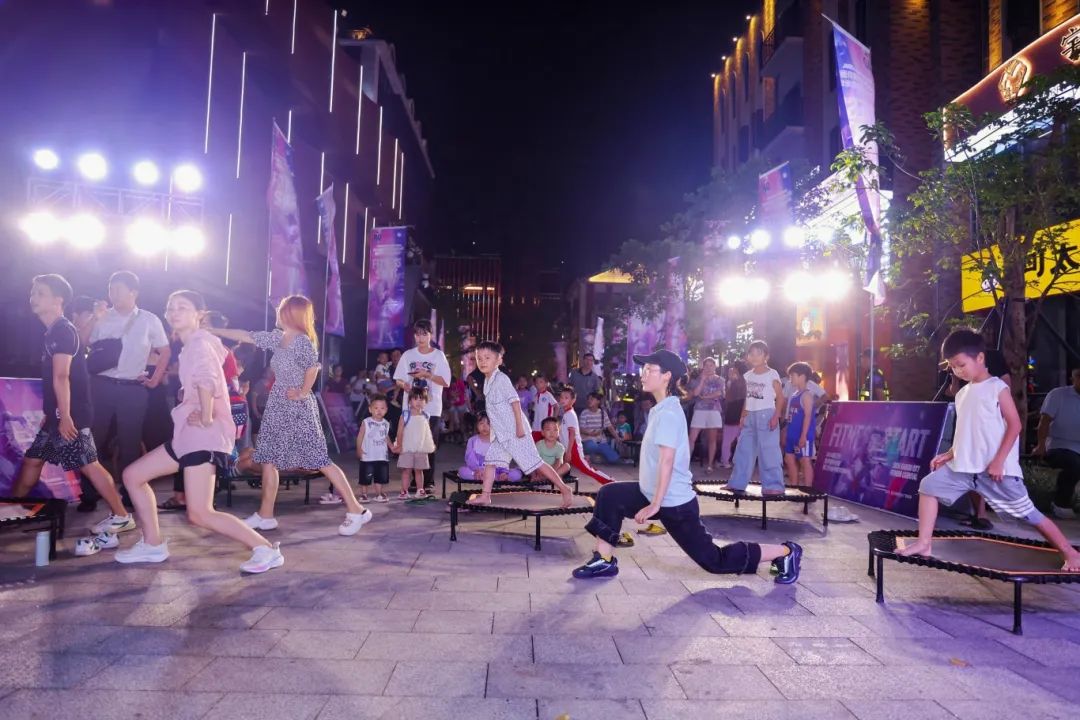 活动现场,高兴里街区被装扮得既时尚又充满动感。燃脂壶铃、塑形杠铃、活力蹦床、动感单车、弹力绳、拳击操等多样化的健身项目一字排开,吸引了众多市民游客驻足围观并积极参与其中。这些项目不仅挑战了参与者的体能极限,更在欢声笑语中传递了积极向上的生活态度。