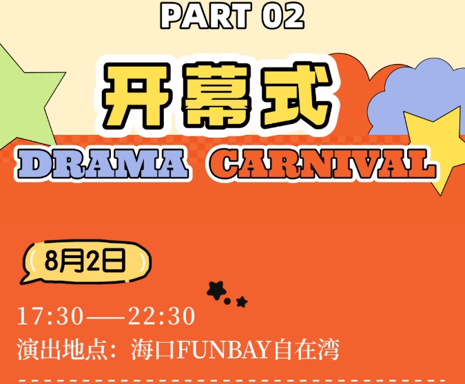 8月2日至9日,海口FUNBAY自在湾街区将变身户外儿童剧场,“DCP读舞社”与海南省演艺集团话剧团的多部经典剧目轮番上演,每晚好戏连台,带上小板凳,快来追剧吧。