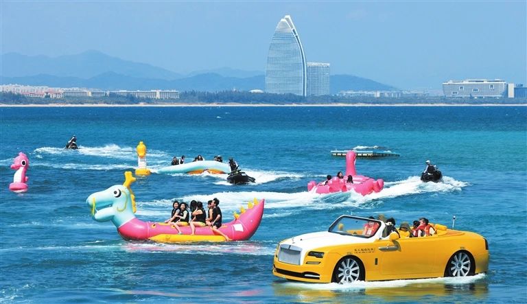 游客在蜈支洲岛旅游区体验水上项目 来源:三亚日报