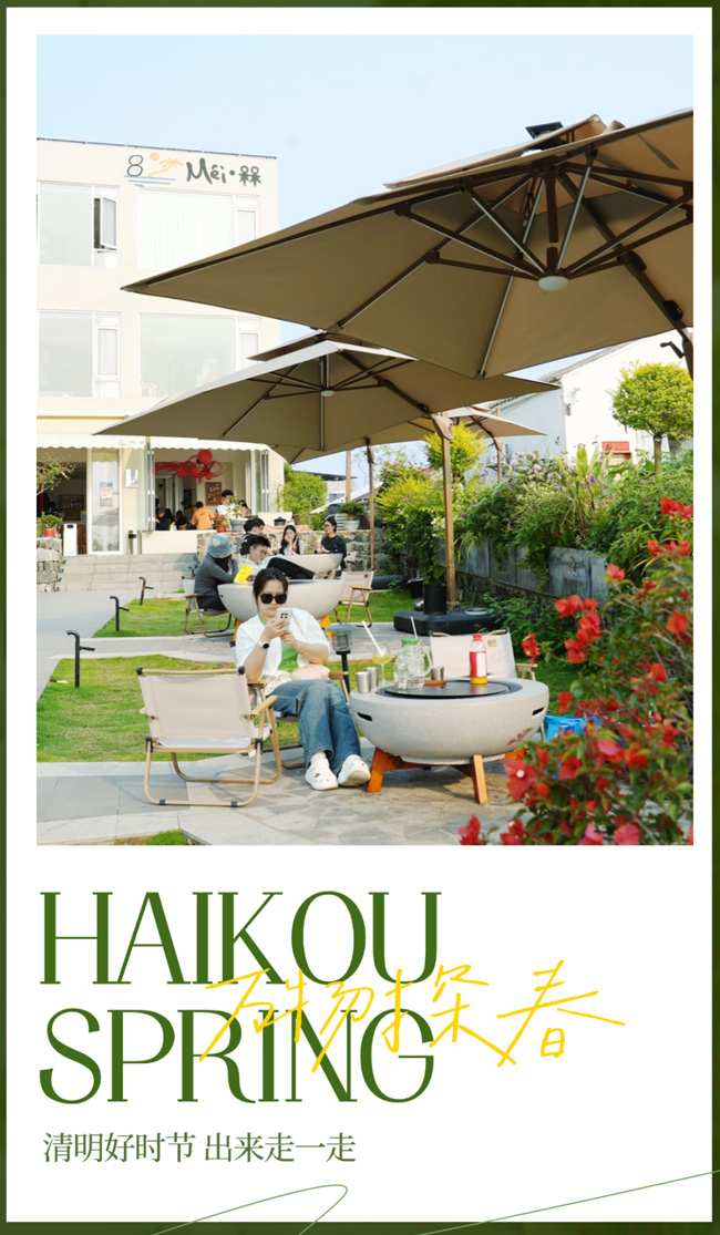 “踏青除了赏花,来海边玩也别有一番风味。傍晚在椰林下,海滩边,我们还会来一场BBQ,惬意又浪漫。”海口市民吴女士说道。春日时光慵懒,最适合海岛漫游!在观海台沿线还有好多家驿站,集结了简餐、轻食、咖啡等特色餐饮,许多年轻人来到这里,面朝大海,喝着咖啡,享受悠然午后。