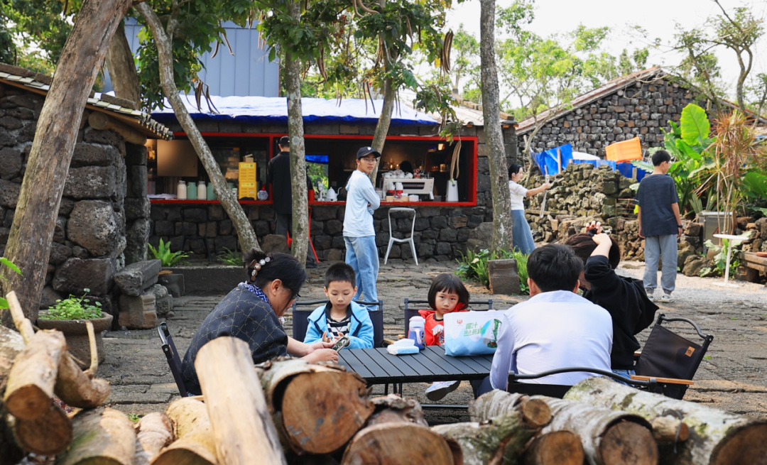 在登山之余,位于火山脚下的三卿村也成为市民游客争相打卡的网红地之一。三卿村历史悠久,村内仍保留了安华楼、豪贤门等古迹遗存,以及古石巷和古石屋,人们漫步在火山岩石铺就的小径上,走进春风十里,体验非遗手作,在院子里品咖,晒着阳光,享受着惬意。