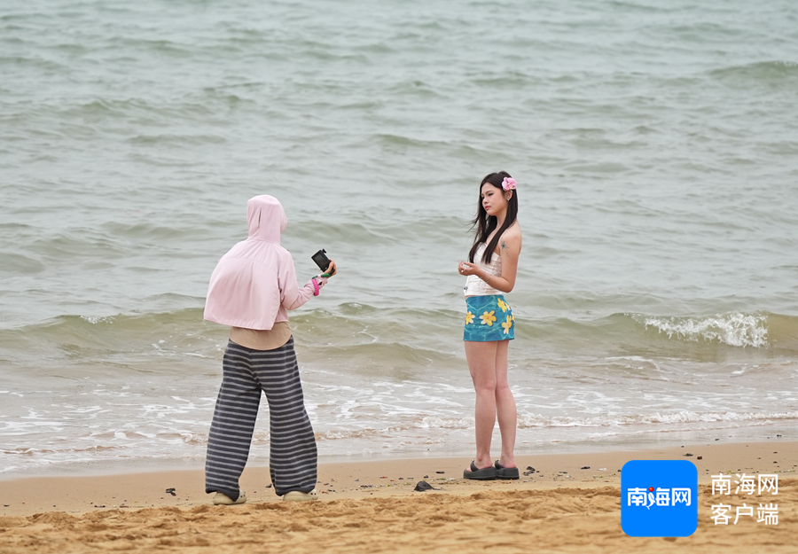 市民游客在沙滩上拍照留影。记者 汪承贤 摄