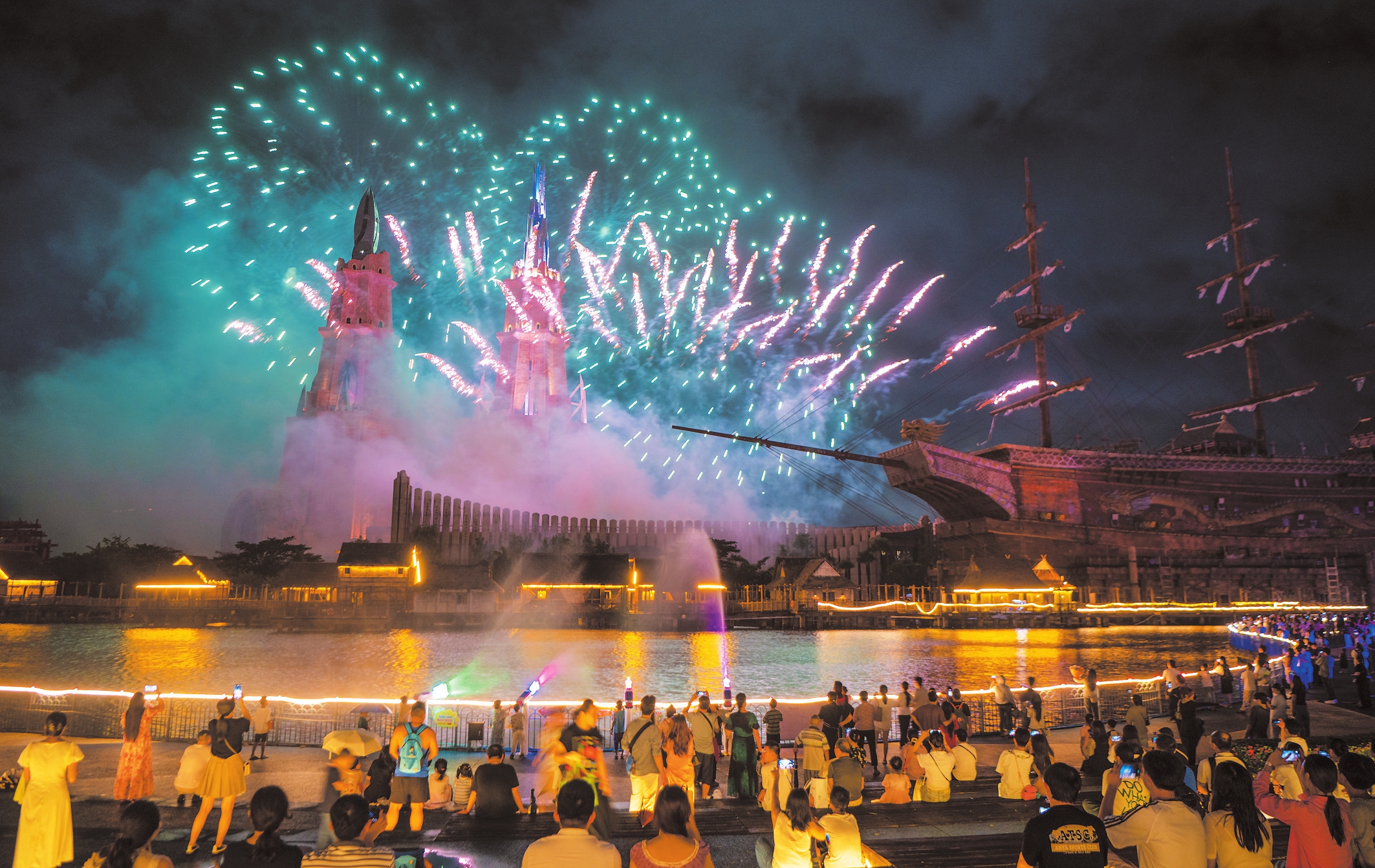 8月29日晚,海口长影环球100奇幻乐园灯火璀璨,绚丽绽放的烟花吸引了众多市民游客前来观赏,共度浪漫节日。据悉,园区充分结合夜间游特色,推出了七夕主题烟花秀、“奇幻乐园”主题妆造旅拍、月老牵线等活动,