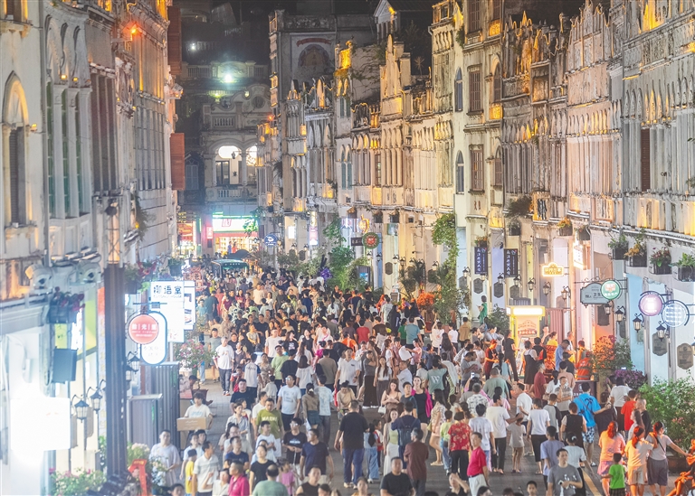 10月6日正值中秋佳节,随着台风“麦德姆”对海口的影响趋于结束,市民游客纷纷走出家门,通过购物、观展、品美食等方式,与亲朋好友共度团圆佳节。全市各大商圈消费热度回升,城市逐渐恢复往日活力。