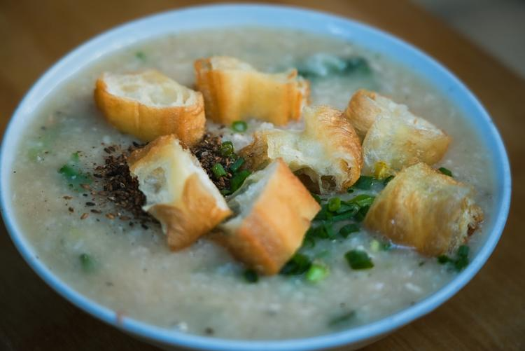 这家经营了二十年的早餐老店,位于自家祖屋的一层,店面不大但环境整洁。鱼腥粥是店里的招牌,虽名为“鱼腥”,实际口感鲜甜,无明显腥味。粥中配料常包括鱼肉、鱿鱼丝、虾米、瘦肉等。海南粉同样值得推荐,卤汁咸香适中,配料充足,滋味浓郁。