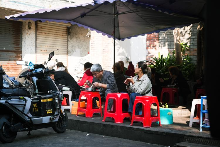 好像每座城市都有一家开在水井边的小店,环境简陋,但人气很旺。这家的伊面汤味道鲜甜,配料是伊面汤常见的老几件:鲜虾弹嫩、海白清甜、鸡蛋香滑、蒜头油香。在水井旁吃一碗热腾腾的伊面汤,耳边是市井的喧嚣,眼前是氤氲的热气,感觉非常治愈和惬意。
