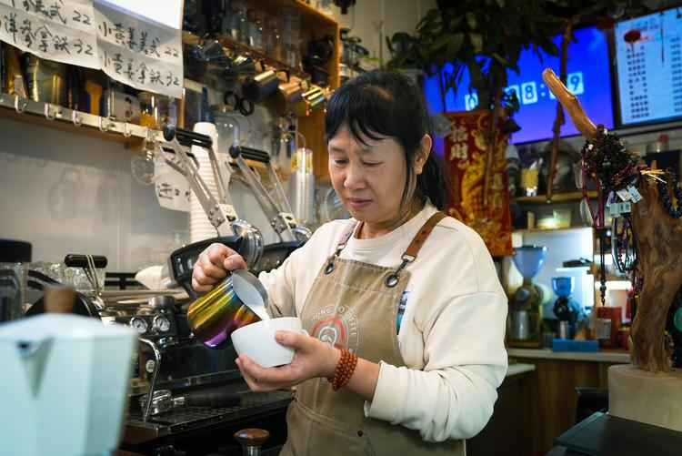 弘角咖啡是一家开在骑楼老街打铁巷里的咖啡店,它将复古文艺的环境和海南咖啡文化风情结合得恰到好处。店铺不大,但细节感满满。木质桌椅、复古灯光,以及用咖啡豆手工镶嵌的招牌,随手一拍都很有氛围感。老板是位湖北人,从北京打拼多年后回到海口开店,后将店铺从中山路搬到了打铁巷。招牌饮品是兴隆纯品、歌比欧,推荐饮品是dirty、黄皮椰椰、斑斓拿铁等。