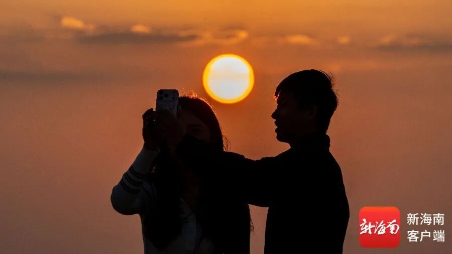 当北方被冬日寒意包裹,海口秀英区荣山寮沙滩却被暖融融的海风与温柔霞光拥抱着,这片被誉为“海口西海岸最后一个渔村”的海滩,在傍晚时分化身创意摄影片场——落日成了最抢手的“天然道具”,市民游客争相与这枚橘红色的“小太阳”花式同框,在椰风海韵里定格海口暖冬的浪漫瞬间。