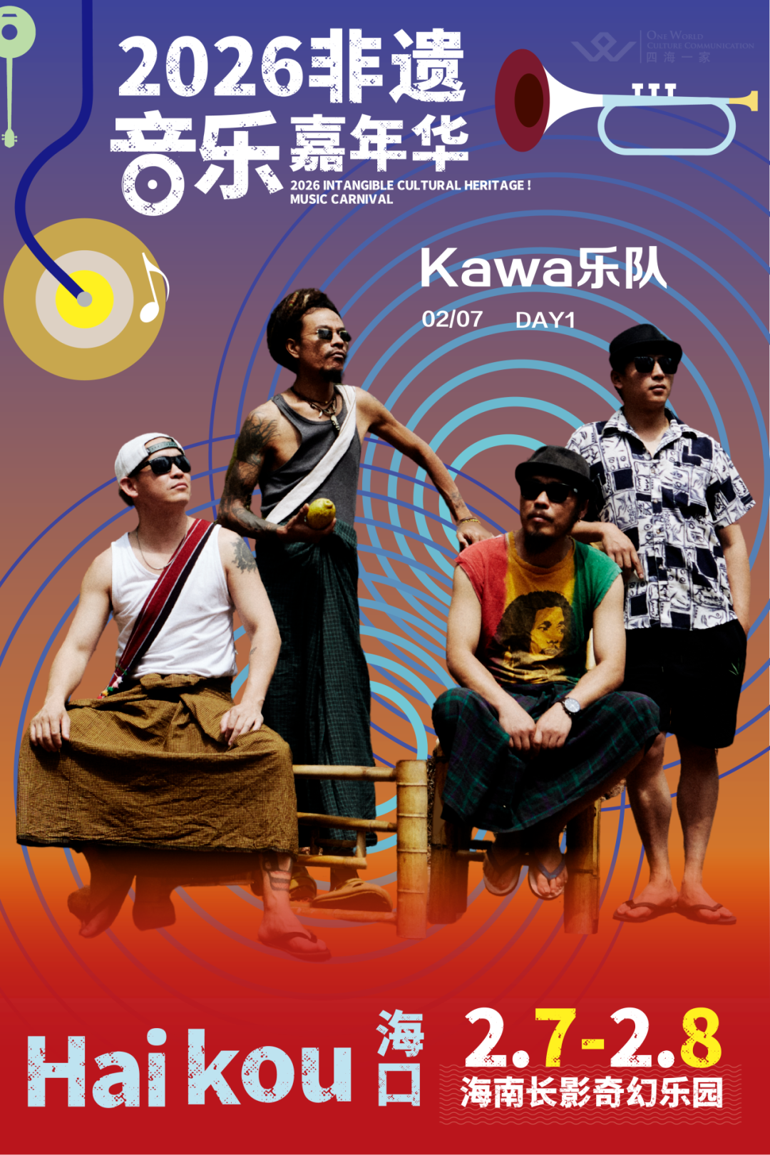 十余组国内知名音乐人及乐队也将齐聚海口,在连续两天的舞台上,实现非遗元素与流行、摇滚、民谣、电子等多风格音乐的创造性融合,展现千年遗响与现代舞台碰撞的非凡魅力。每日七组嘉宾震撼演出,还有至少四组嘉宾敬请期待!