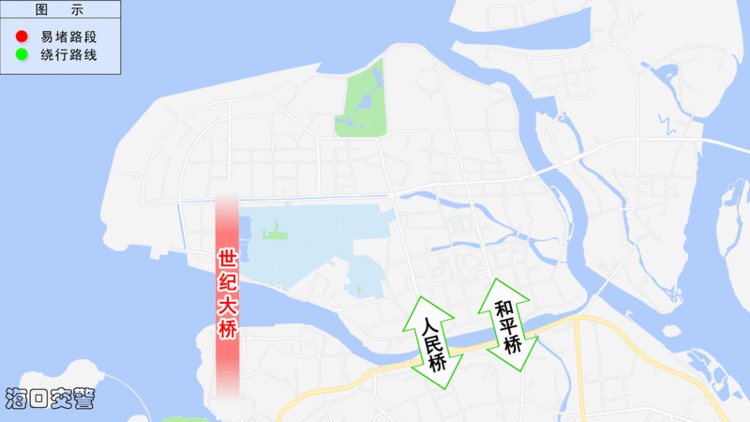 ④如世纪大桥交通流量大,途经车辆可绕行和平桥、人民桥进出海甸岛。