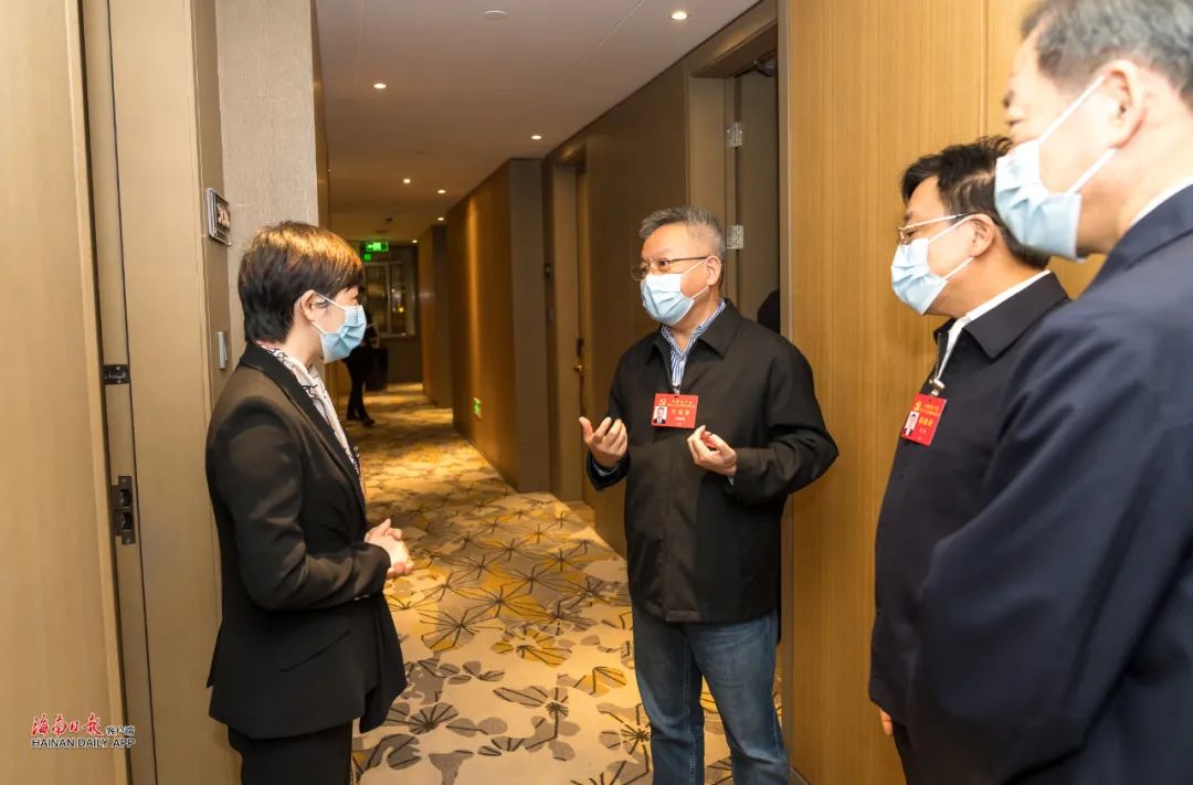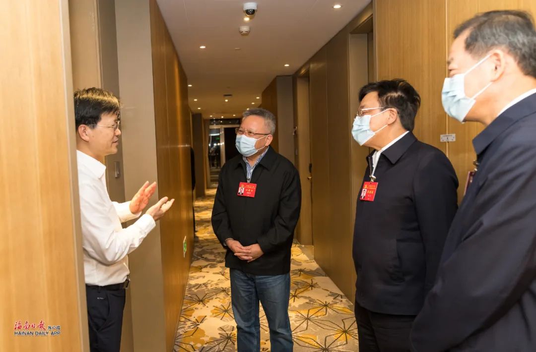 10月14日晚,省委书记、党的二十大代表沈晓明,省长、党的二十大代表冯飞在海南省代表团住地看望我省出席党的二十大代表、随团工作人员和媒体记者。