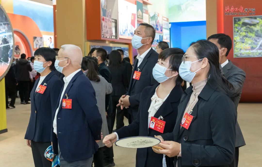 “习近平总书记在海南省五指山市水满乡毛纳村考察”“习近平总书记向王书茂颁授‘七一勋章’”“海南自由贸易港首艘船舶登记发证”“海南自由贸易港立法调研”“海南热带雨林国家公园设立”“长征五号运载火箭发射”“海南省琼中女足夺冠”“海南外来务工人员领取居住证”……在中央综合展区,代表们看到具有海南元素的展示,非常振奋和激动,共同回忆起习近平总书记在海南考察时的场景,重温习近平总书记关于海南工作的系列重要讲话和指示批示精神。大家表示,新时代十年来,以习近平同志为核心的党中央带领全党全军全国各族人民推进了一系列变革性实践,取得了一系列标志性成果,有幸作为代表参加党的二十大,参与和见证党和国家事业的蓬勃发展,深感骄傲和自豪,相信党的二十大必将为中国开启更加壮阔的征程,指引我们创造更加美好的明天。